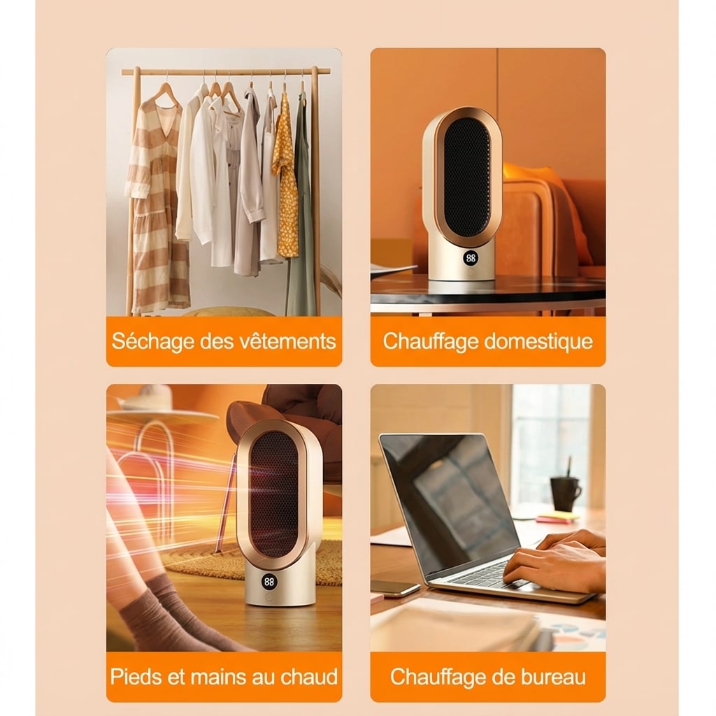 Chauffage compact, chauffe vite mon bureau. Silencieux et facile à bouger. Très satisfait.
