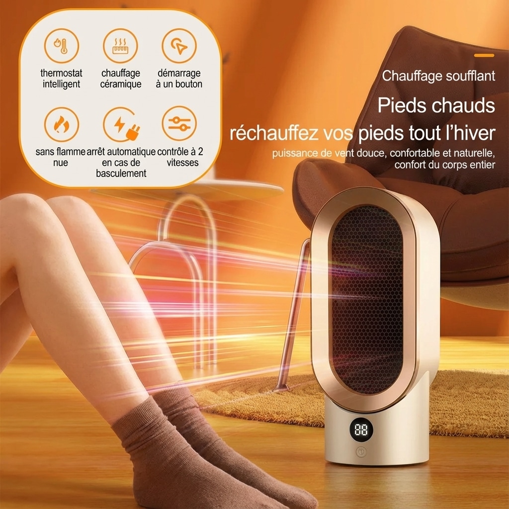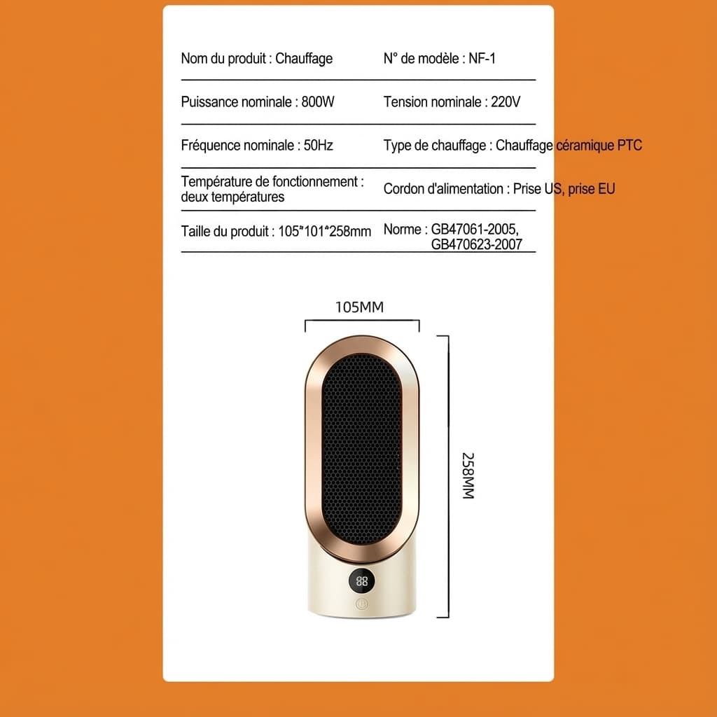 Descubre un calefactor potente y discreto diseñado para calentar rápidamente tus espacios: el calefactor portátil con ventilador eléctrico proporciona un calor uniforme gracias a su tecnología PTC cerámica. Con sus 800 W y dos modos ajustables, combina rendimiento y eficiencia energética para calentar estancias de 21 a 30 m² sin consumir demasiado. Su tamaño compacto (10,5 x 10,1 x 25,8 cm) lo hace ideal para el despacho o el dormitorio.