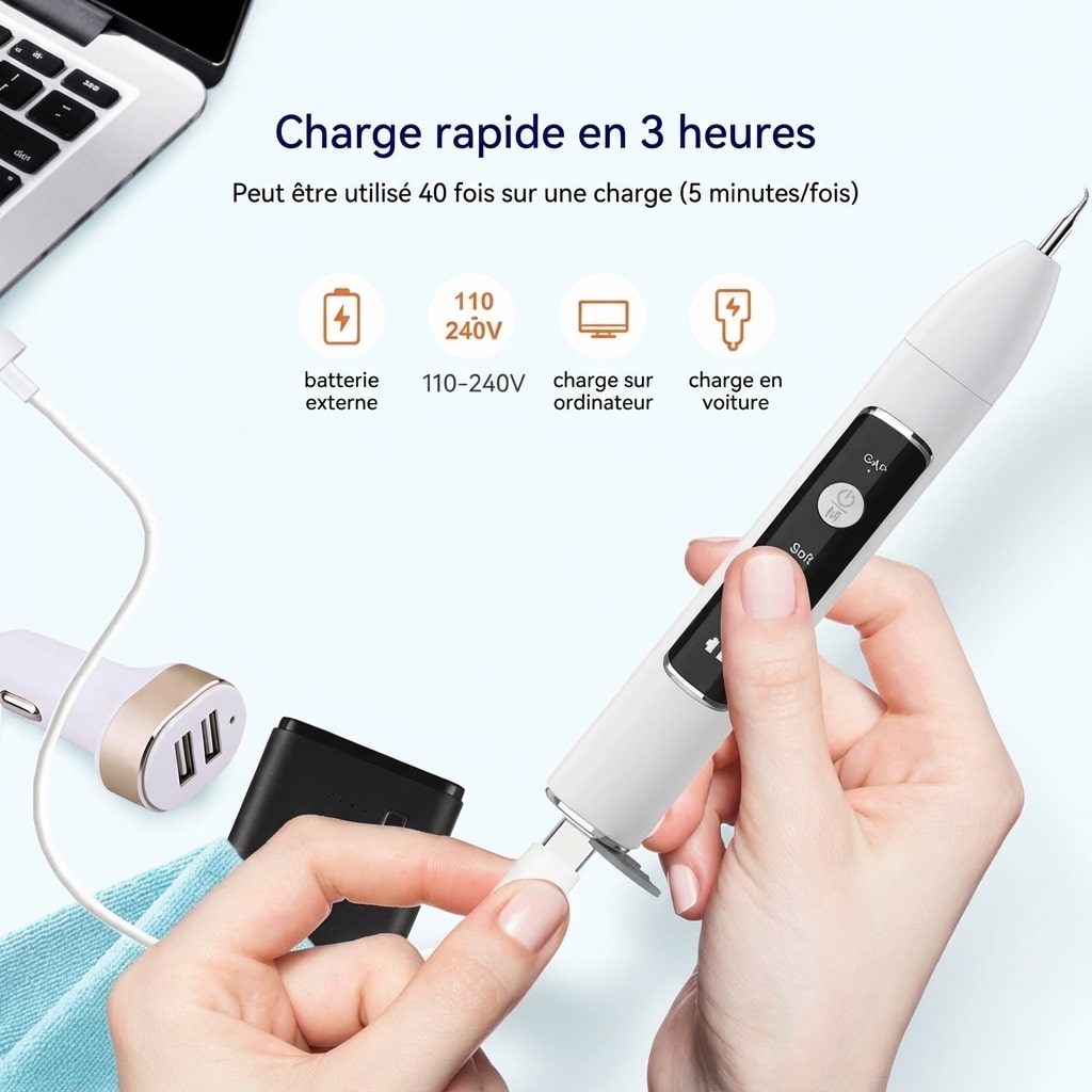 🔋 Autonomie et performances optimisées — Détartreur dentaire à Ultrasons avec caméra