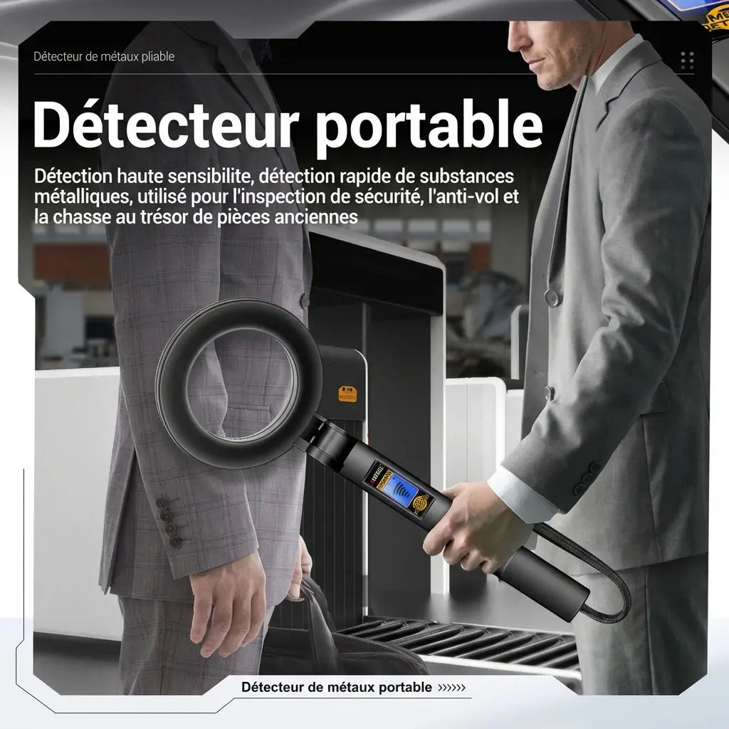 ✅ Détecteur de métaux portatif pliable — Léger et pliable