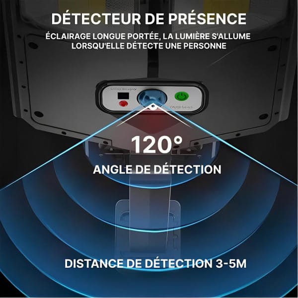 La lumière s’allume à la détection de mouvement et s’éteint lorsque la zone est dégagée.