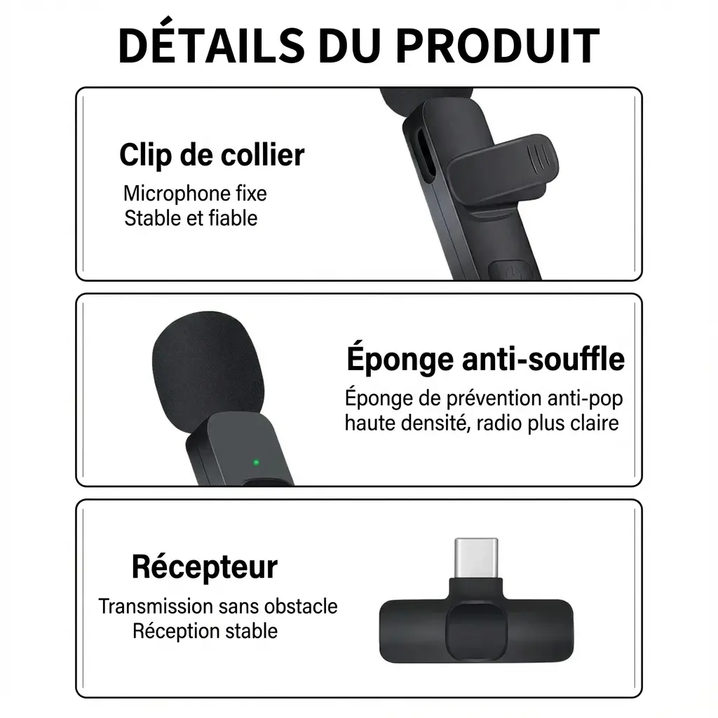 Microphone Lavalier Cravate USB-C 🔋 — Compatibilités et simplicité