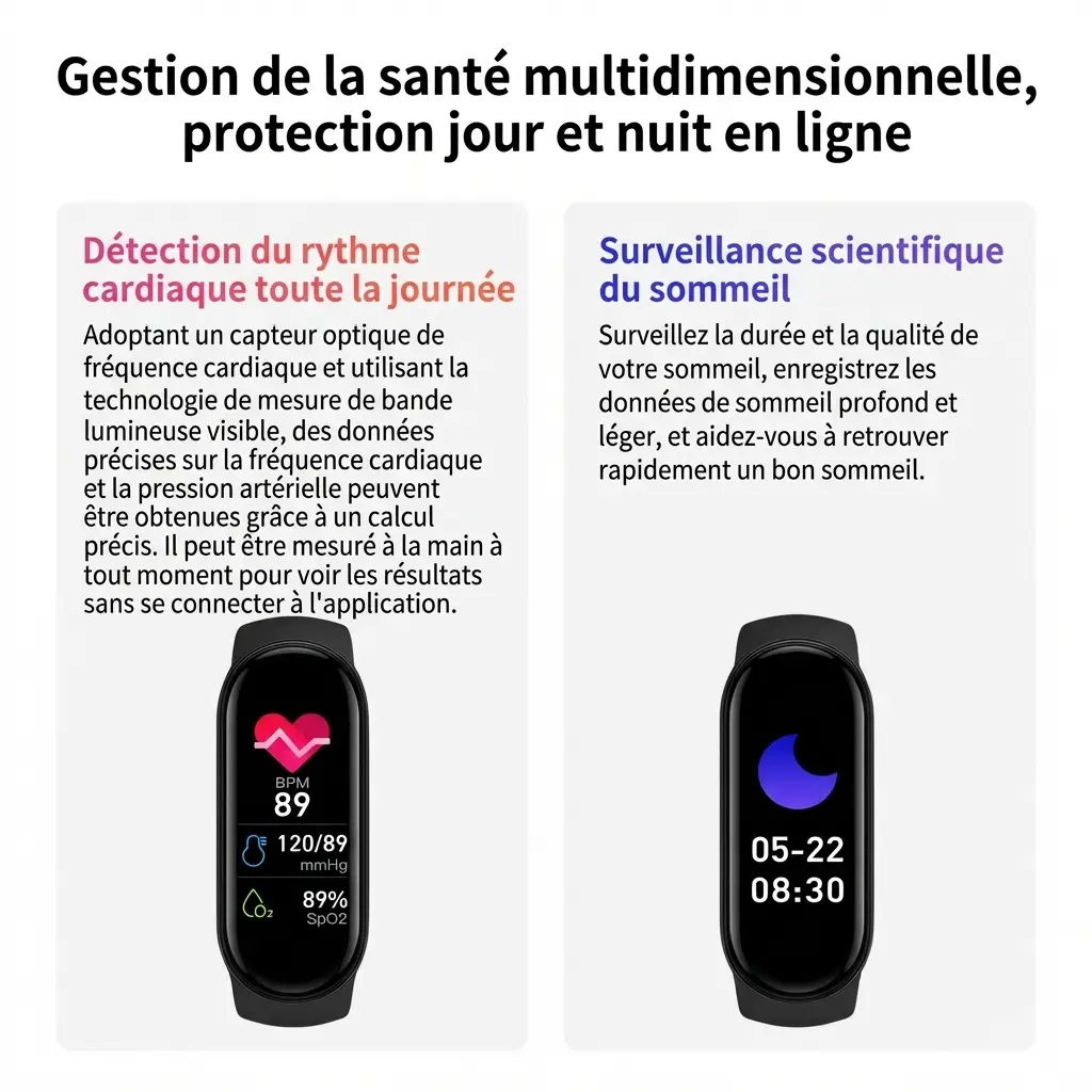 Découvrez une montre pensée pour suivre chaque instant de votre journée : pas, calories, distance et suivi complet du sommeil. La Montre intelligente Fitness connectée iSport affiche ses données sur un écran OLED de 0.96 pouces pour une lecture claire et rapide. Grâce à la surveillance continue du rythme cardiaque et de la pression sanguine, vous bénéficiez d’un suivi santé quotidien précis et discret. Son design léger (47 g) et son bracelet en TPE assurent un confort optimal pour un port 24h/24.