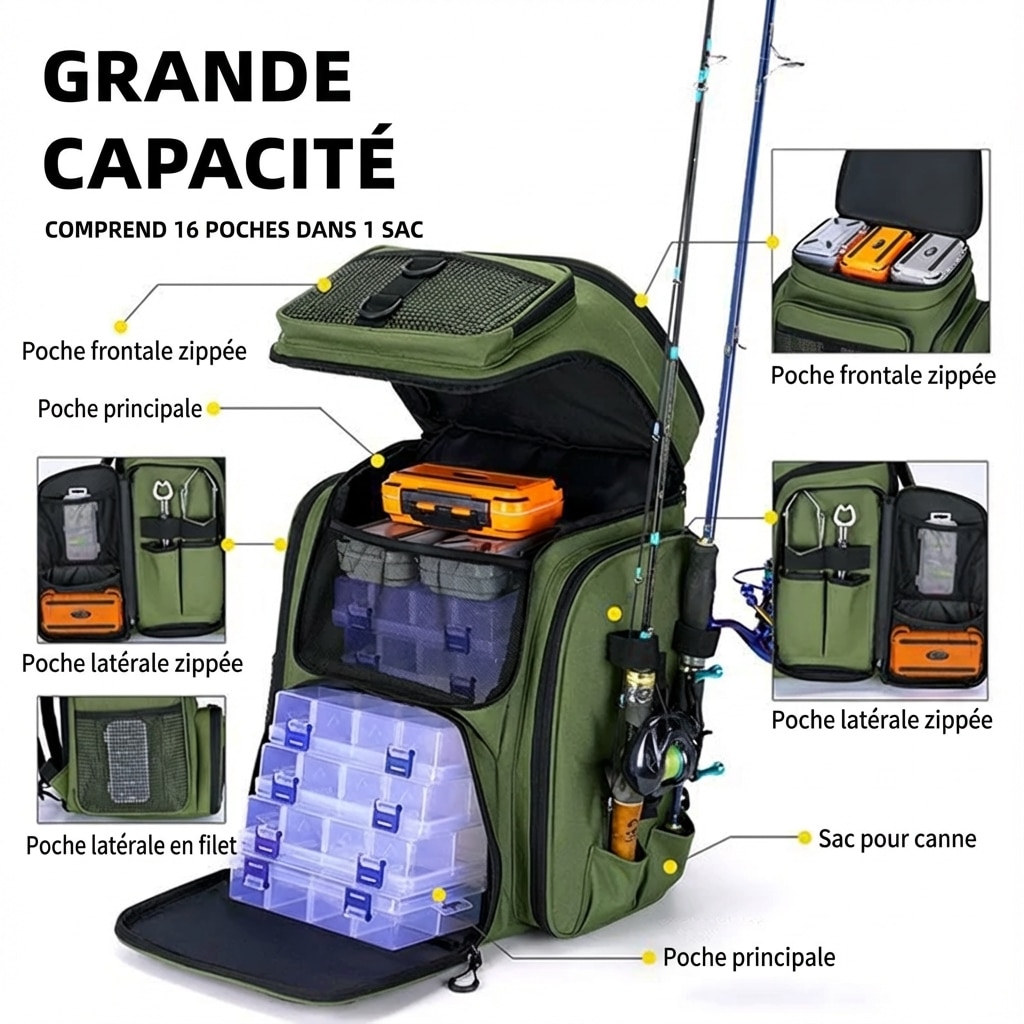 Imaginez partir léger mais équipé : grâce à ses zones de rangement intelligentes et sa capacité généreuse, ce sac facilite l’organisation et la mobilité. Le design polyvalent convient aux sorties de pêche, aux expéditions en pleine nature et aux utilisations quotidiennes. Le confort de portage, la robustesse des matériaux et la fonctionnalité des supports font de ce produit un allié fiable sur le terrain.