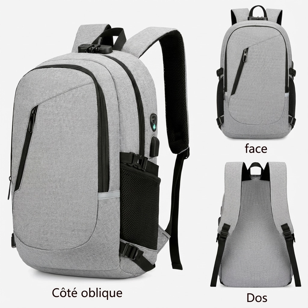 Ne laissez pas passer l’occasion d’améliorer vos déplacements : ce sac combine **sécurité**, confort et rangement intelligent. Idéal pour les trajets urbains et les voyages, il est livré avec tous les atouts pour protéger vos appareils et organiser vos affaires. Commandez votre Sac a Dos Ordinateur de voyage antivol dès aujourd’hui et profitez d’un compagnon fiable pour toutes vos aventures. Emballage : 1 × sac à dos. Dimensions et capacité indiquées dans la fiche produit.