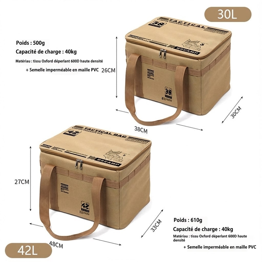 Attirez l’attention dès le départ avec un sac conçu pour simplifier vos aventures : le Sac de rangement de Camping Tactique 30-42L est la solution idéale pour ranger équipement, ustensiles et accessoires. Grâce à une grande capacité (30L ou 42L), ce sac de rangement camping permet d’emporter l’essentiel pour les pique-niques, randonnées ou week-ends en plein air sans compromettre l’ordre. Sa conception pratique en tissu Oxford et sa doublure en coton allient durabilité et confort.