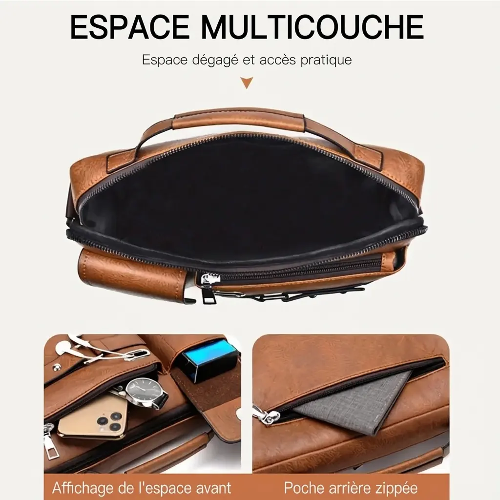 Adoptez un look soigné sans sacrifier la praticité avec ce sac pensé pour l’homme moderne. Sa silhouette rétro et sa finition soignée attirent l’œil en toutes circonstances, que ce soit pour vos déplacements professionnels ou vos sorties en ville. Conçu pour être à la fois élégant et résistant, il s’intègre parfaitement à une tenue business comme casual, apportant une touche d’assurance et de style.